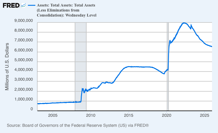 If inflation were truly beaten, the Federal Reserve wouldn’t still be sitting on a $6.6 trillion balance sheet filled with Treasury debt, mortgage-backed securities, and agency debt.