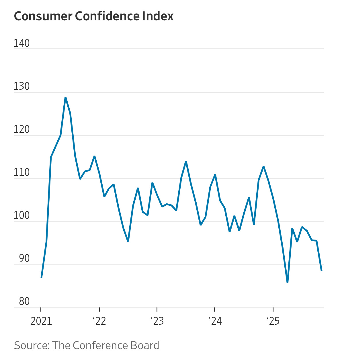 The Conference Board reported that consumer confidence plunged to 88.7 in November, a steep drop from 95.5 just a month prior.