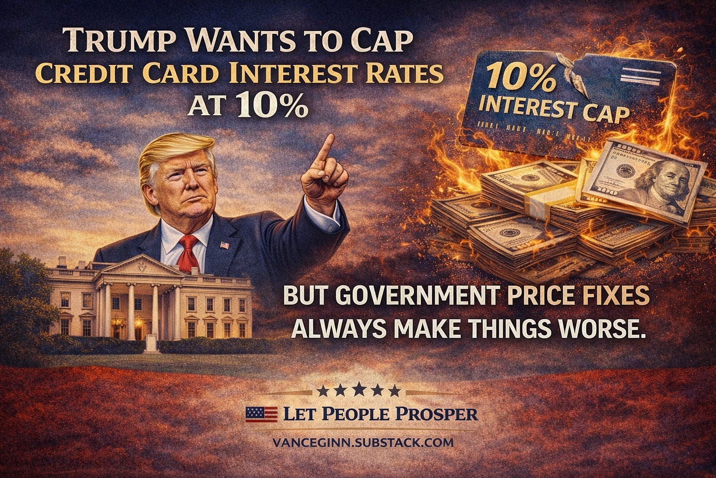 President Trump wants to cap credit card interest rates at 10% compared with the 20%+ most cards charge today. The justification is familiar: credit card rates are high, many households feel squeezed, and the government should step in to protect consumers.