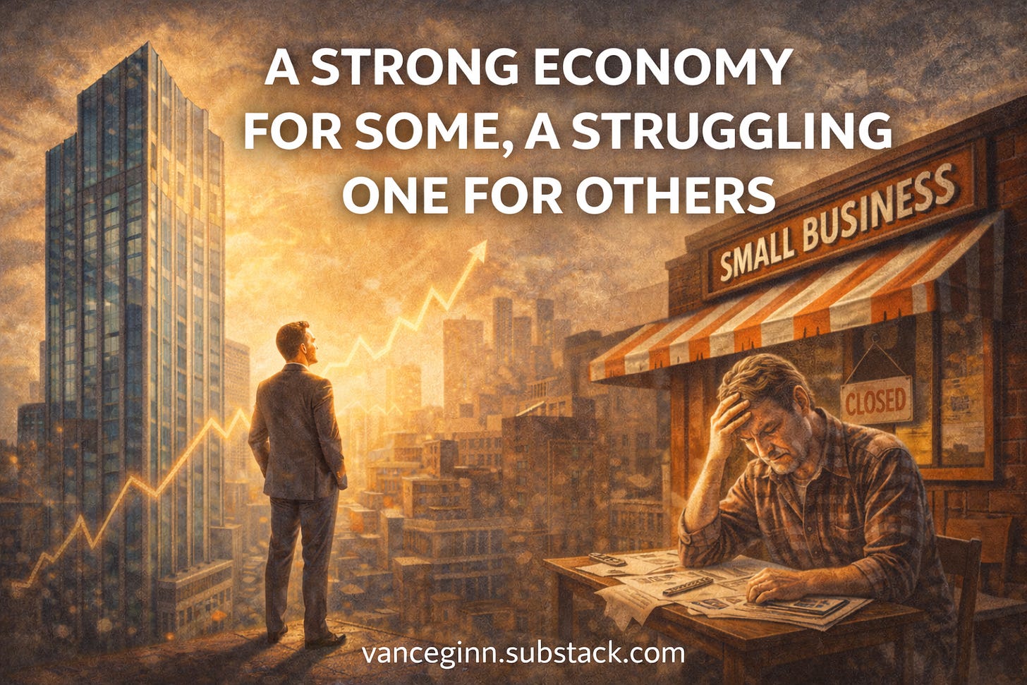 If you read the economic headlines alone, the economy looks fine. Real GDP grew again in the third quarter. Consumer spending held up. Corporate earnings—especially among large firms—remain strong.
