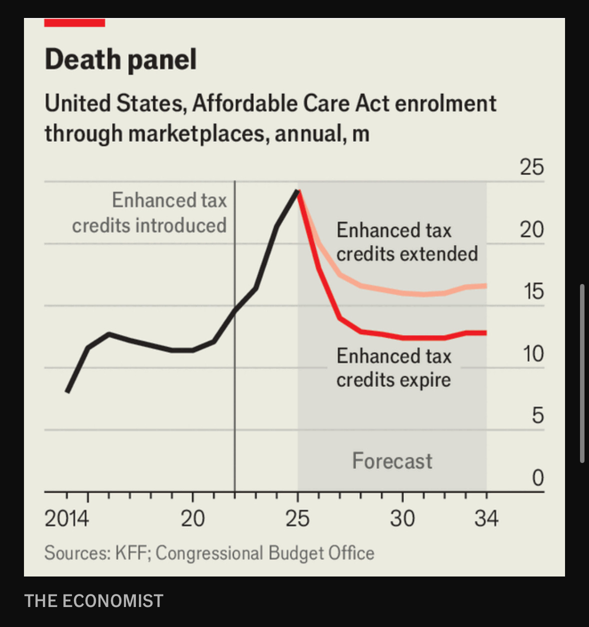Now, according to The Economist, those temporary subsidies finally expire at the end of this month. And unless Congress acts, the Congressional Budget Office says 3.5 million people could lose health insurance coverage over the next few years.