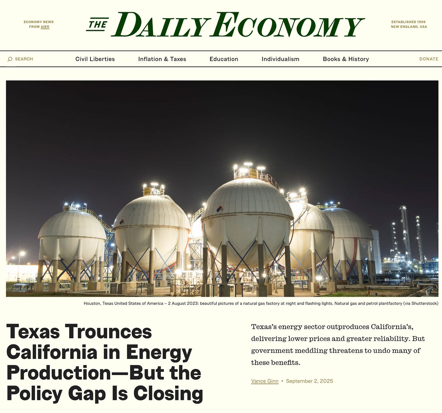 The new federal approach rightly prioritizes more American energy production and infrastructure — a welcome shift after four years of Washington micromanaging markets, piling on costly regulations, and forcing unreliable sources onto the grid. But as I argue in The Daily Economy, states must also resist the urge to control energy markets — a mistake Texas is already beginning to make.