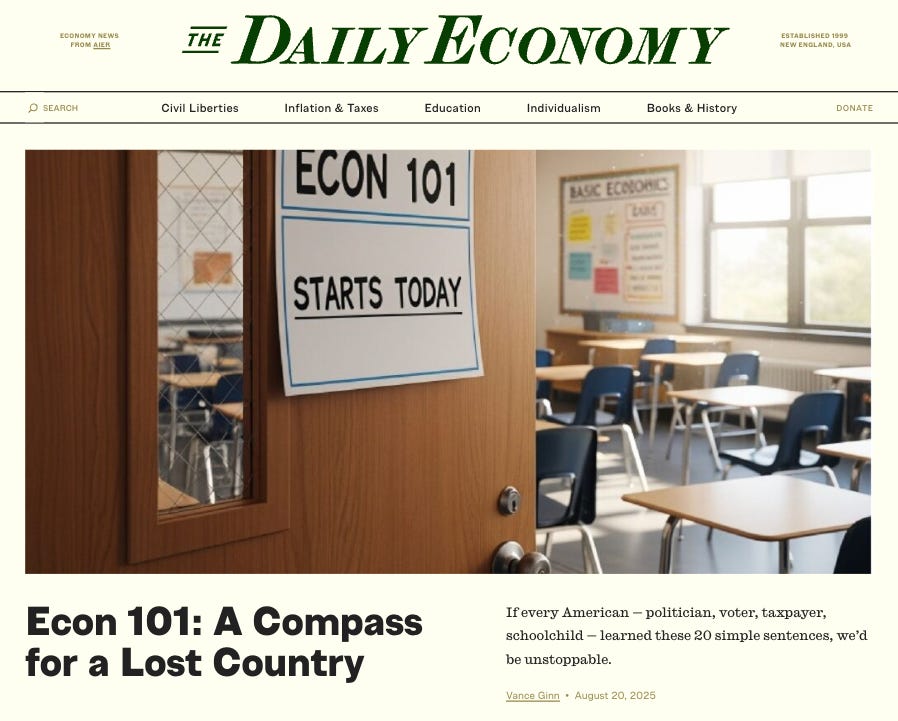 Our nation has lost its economic compass. We need a return to the fundamentals of economic freedom—and that begins with understanding the basic principles of economics. I’ve written on this topic at Pelican Institute and The Daily Economy, with my AIER article featured in Cafe Hayek and RealClear Markets.