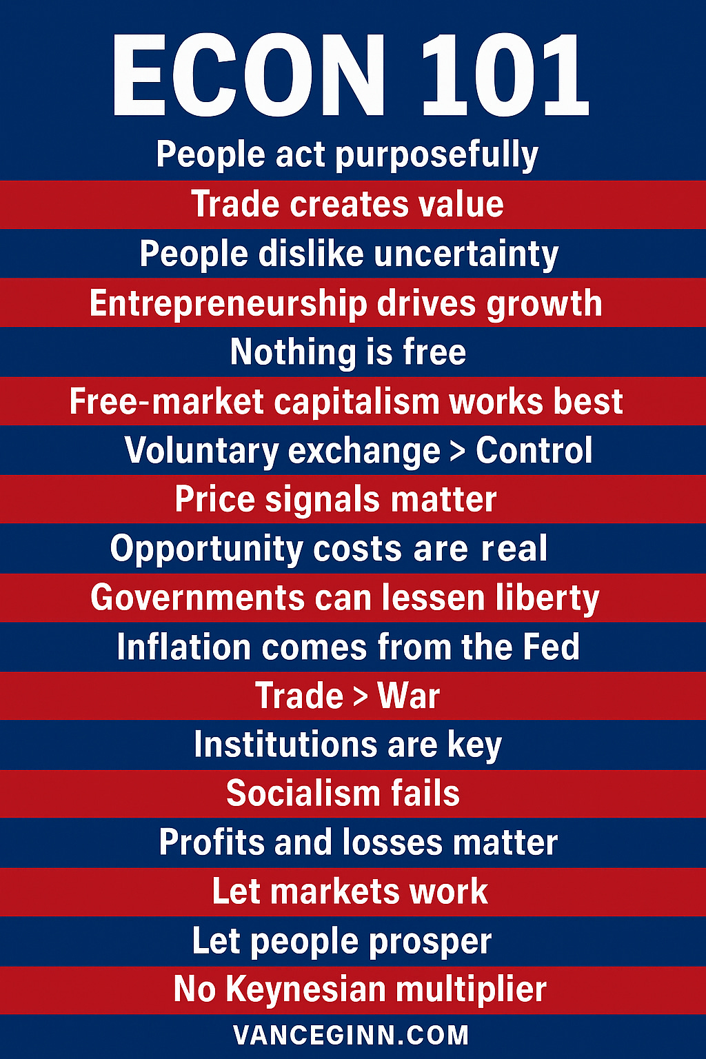 These aren’t partisan ideas. They’re common-sense principles grounded in human reality. When people are free to work, trade, save, and invest, prosperity follows. When politicians interfere, it fades.
